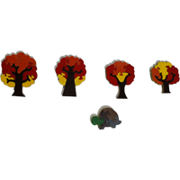 جعبه پازل چوبی شامل 4 پازل درخت و یک پازل لاک پشت با رنگ بندی چهار فصل برای درختان